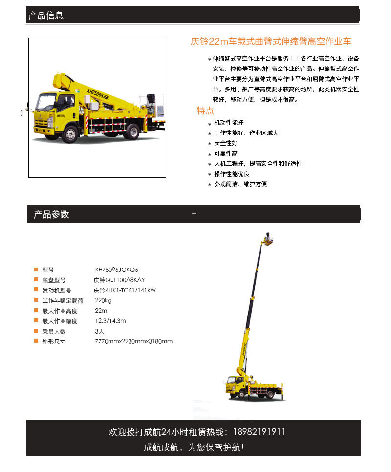 22m車載式曲臂式伸縮臂式高空作業車